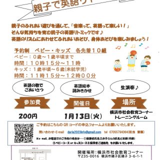 ♢日 時:1/26(月)10:30~11:30 ♢トレーニングルームにて ♢対 象:0才~未就園児とその保護者 ♢参加費:200円 ♢大人も子どもも動きやすい服装でご参加ください。 詳細はチラシをご覧ください。